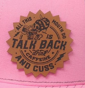 Talk Back and Cuss Engraved Leatherette Hat Patch - MR01