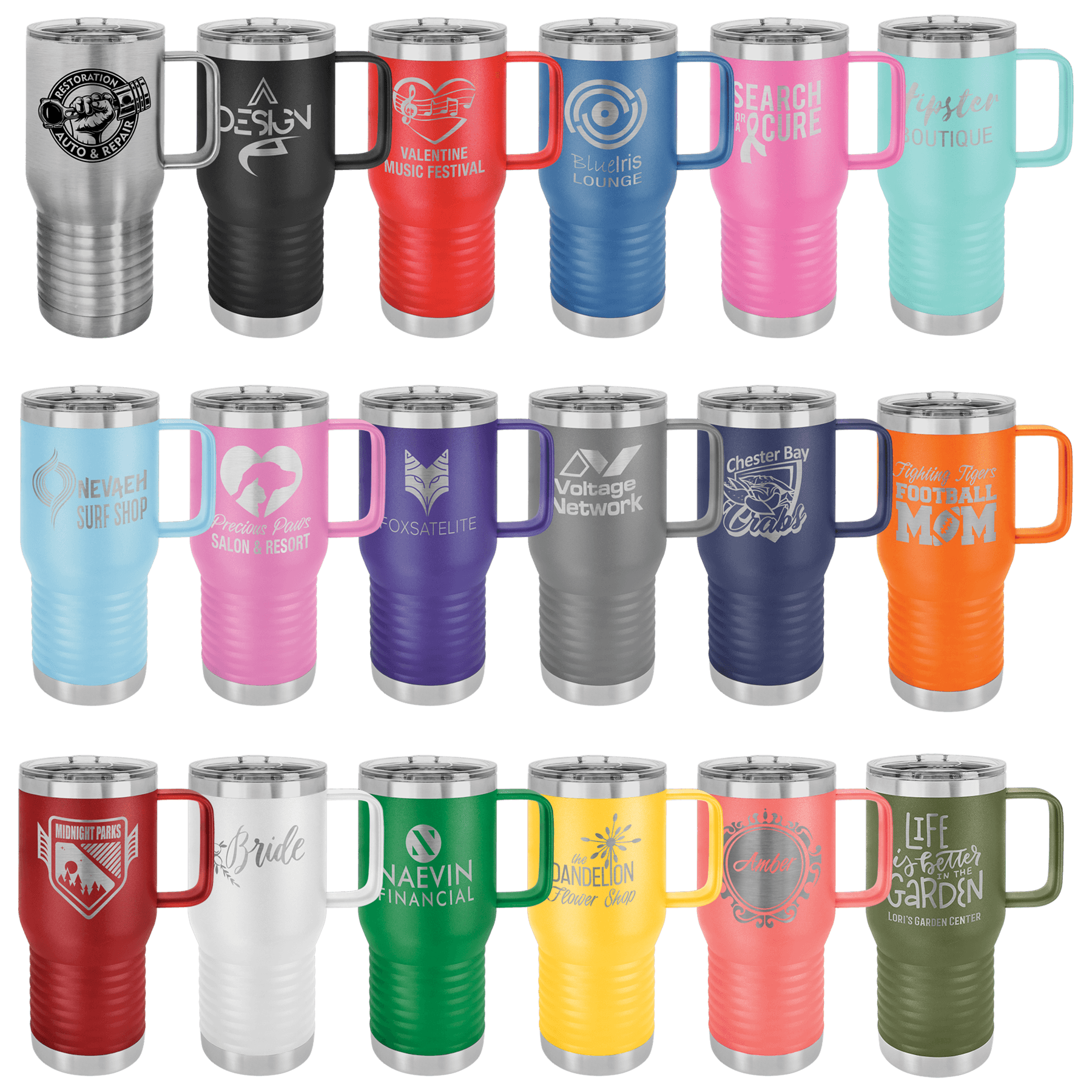 These large 20oz stainless steel insulated coffee mugs with a handle are a great office gift for your team and employees. Each mug comes with a standard lid and can be ordered in various colors. Helping business grown their brand and increase employee retention through promotional items is a passion of ours. Let us help you today.
