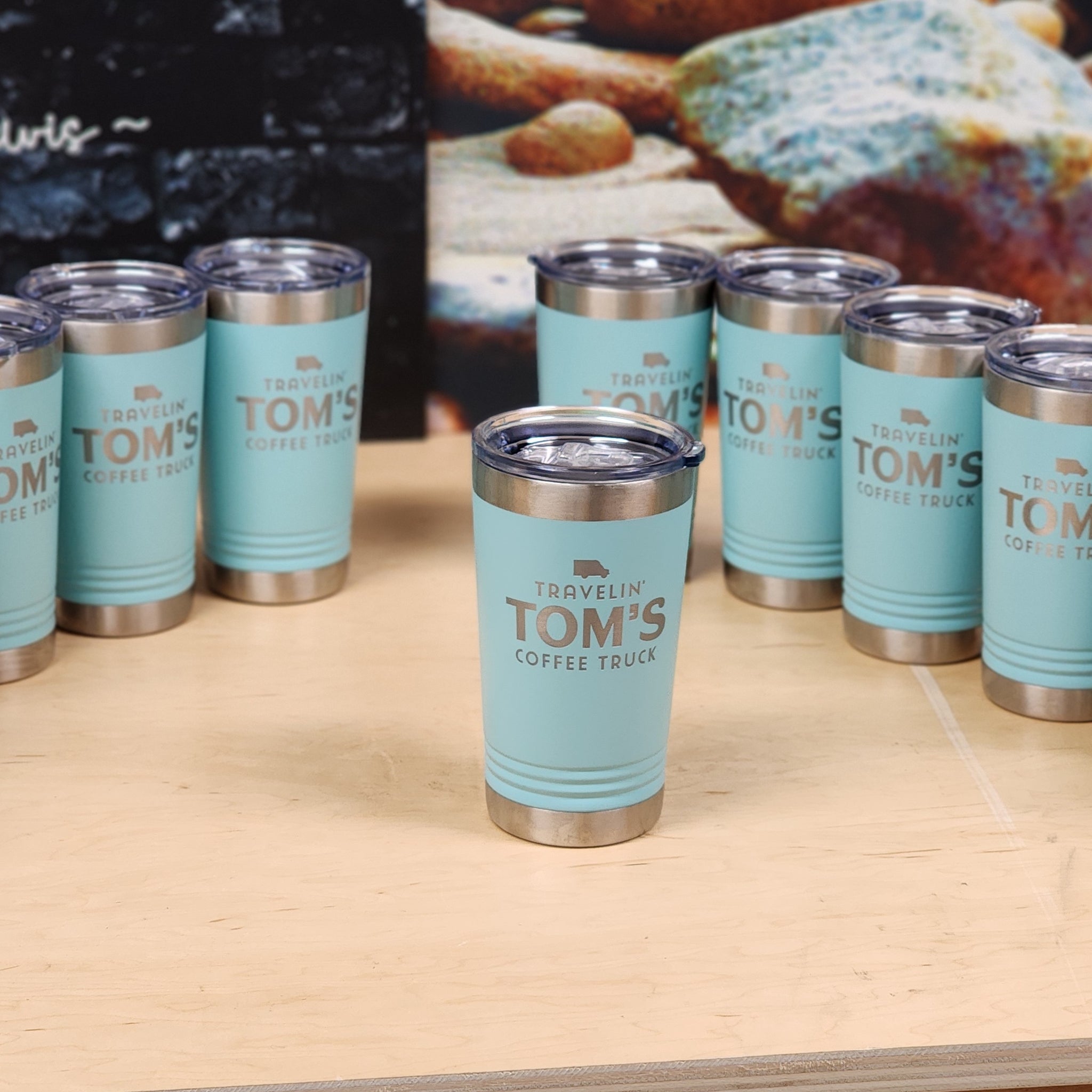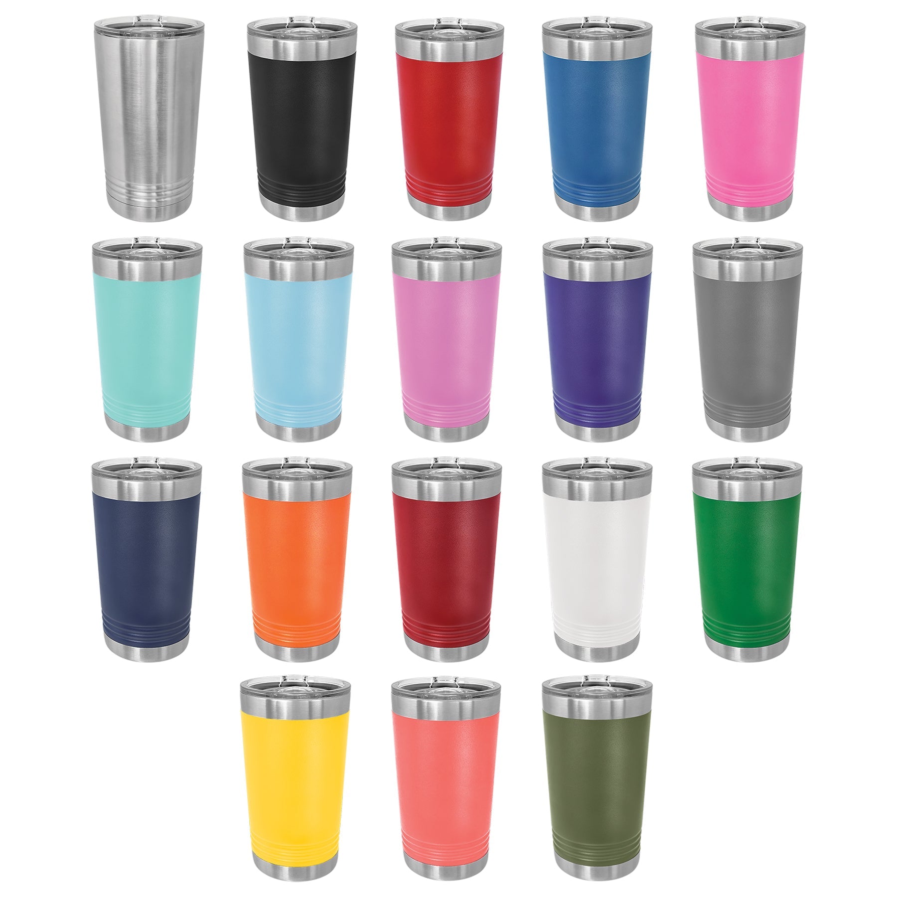 These 16oz stainless steel insulated pint tumblers are engraved with your logo for a unique shape and size for your business swag. Each tumbler comes with a standard lid and can be ordered in various colors.