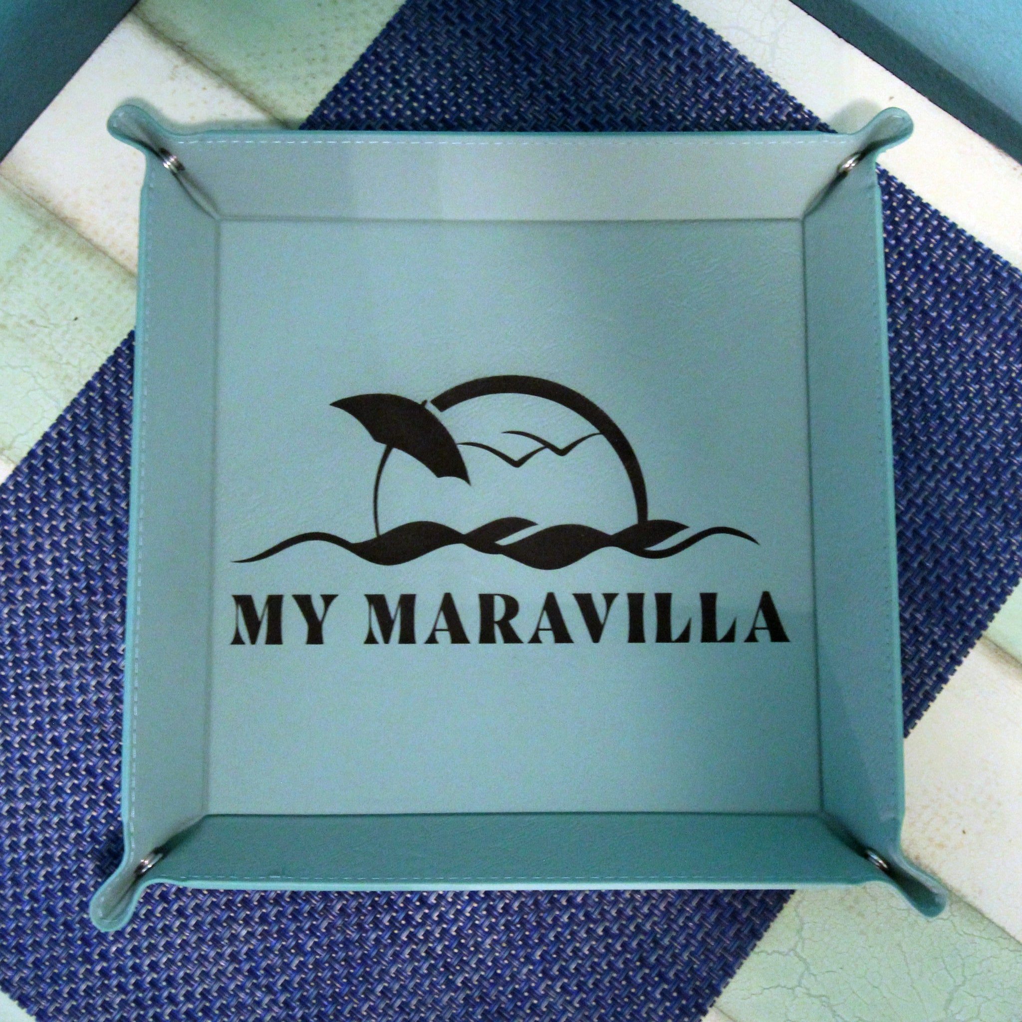 This Vegan Entry Leather Tray for keys and other every day carry items is a stylish and sustainable way to keep keys organized and easily accessible. This particular tray can be customized with a vacation rental logo, adding a personalized touch that makes it a great addition to any rental property.
