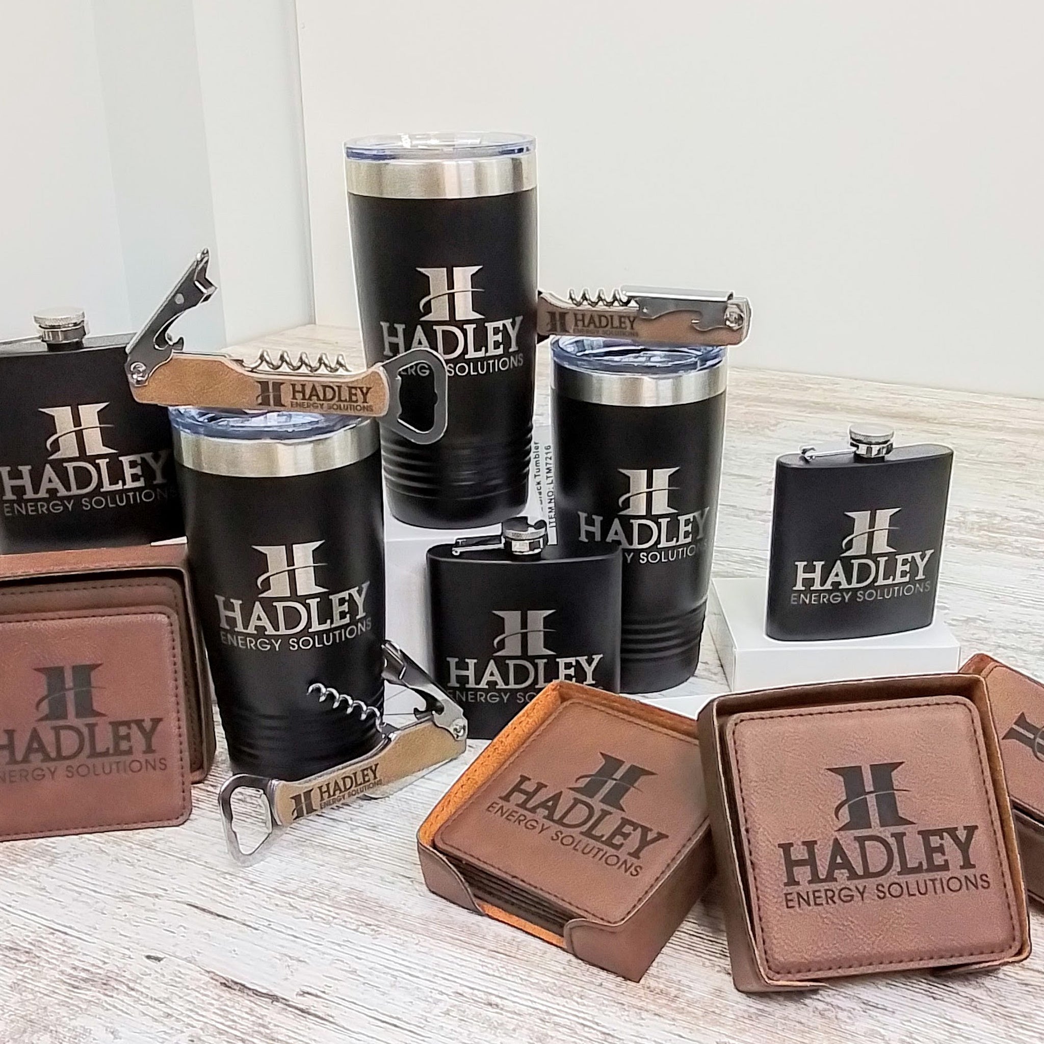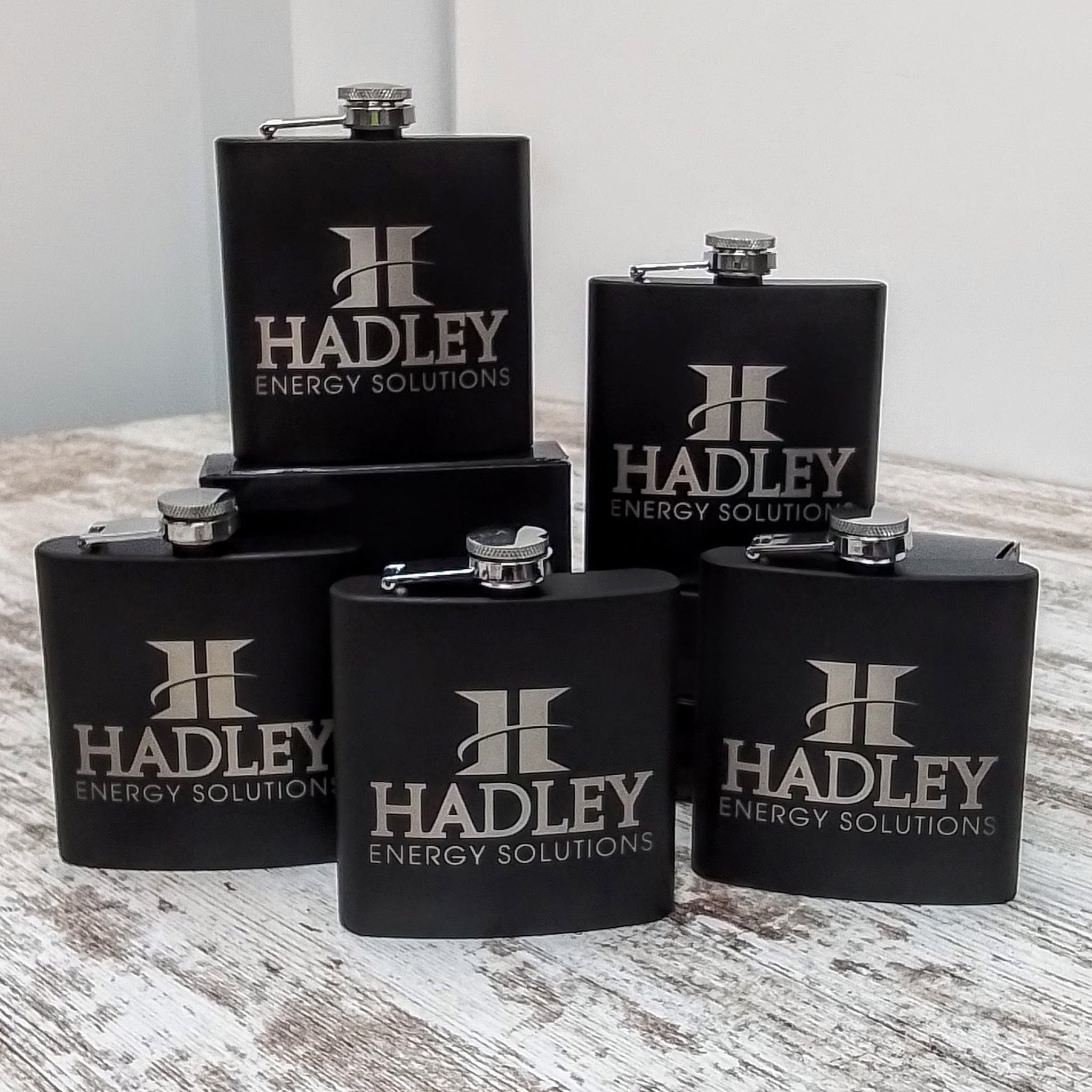 These 6oz stainless steel flasks are great corporate gifts or for bachelor parties and wedding party favors. We can custom engrave with names, designs or your logo as seen here.