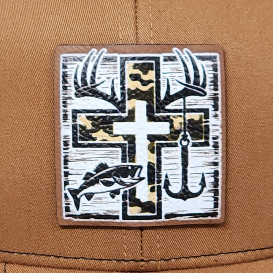 Elevate your look with this unique camo cross patch! Perfect for outdoor enthusiasts, this hat patch combines faith, fishing, and adventure.